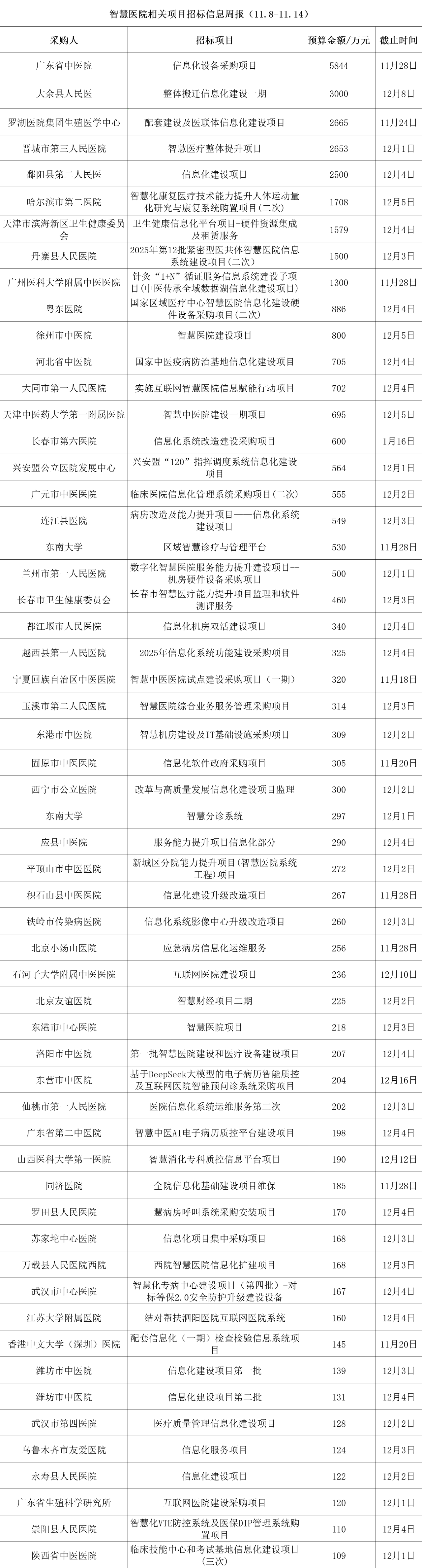 智慧医院相关项目招标信息周报(11.8-11.14)