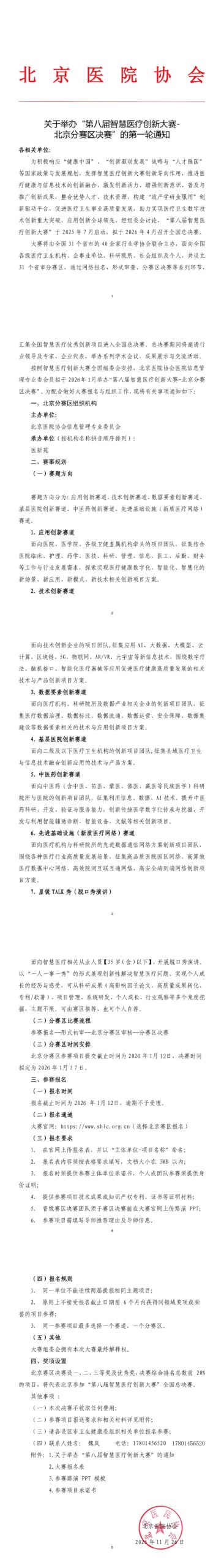 经智慧医疗创新大赛北京分赛区组委会、北京医院协会信息管理专委会研究决定,北京分赛区决赛延期。